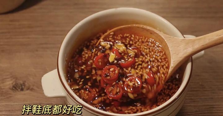 把料汁搅拌均匀,还可以放一勺老干妈提提味。