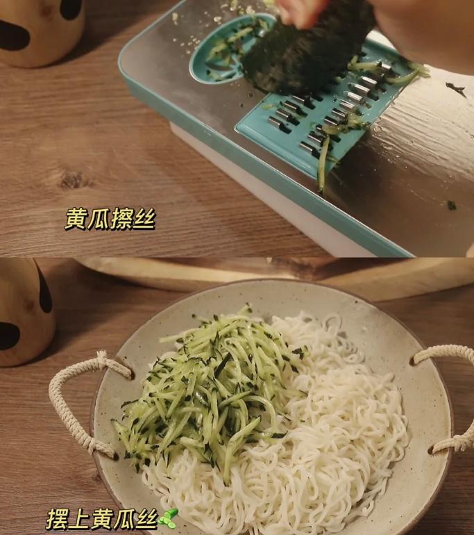 准备一些黄瓜丝,喜欢吃别的配菜,也可以搭配着别的配菜。