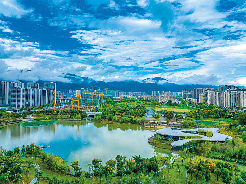 夏日傍晚,浙江省丽水市两湖公园里,穿过大溪河谷的风送来徐徐凉意,市民们漫步园中,纳凉休憩。多年前,地势低洼的此处是丽水市区易涝点,2021年,寿元湖、明星湖两处人工湖建成,调蓄雨洪,防范内涝。两湖进一步构成丽水市的城市风廊,持续消解城市热岛效应、浊岛效应。
